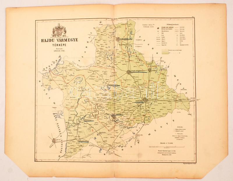 Hajdú megye térképe, Gönczy Pál - Kogutowicz Manó: Magyarország megyéinek kézi atlasza. Tervezte: - -, rajzolta: - - Bp. (1890.) Posner Károly Lajos és fia. 2 sarok levágva, 45x57cm