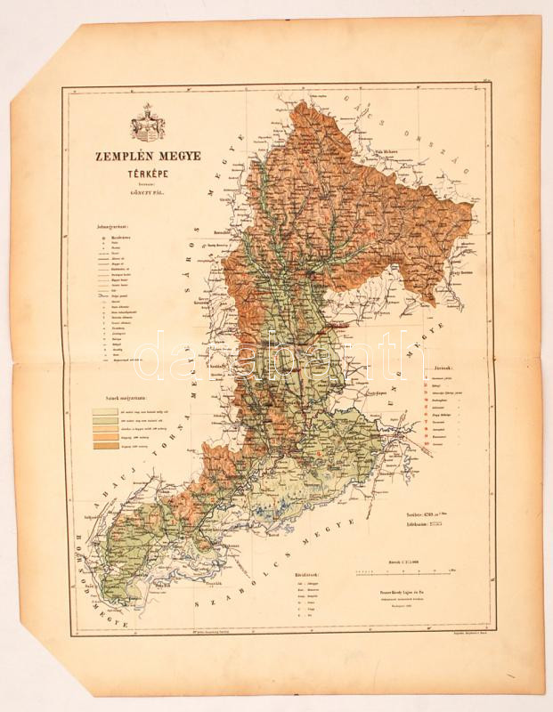 Zemplén megye térképe, Gönczy Pál - Kogutowicz Manó: Magyarország megyéinek kézi atlasza. Tervezte: - -, rajzolta: - - Bp. (1890.) Posner Károly Lajos és fia. 2 sarok levágva, 57x45cm