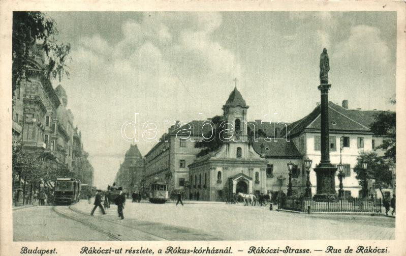 Budapest VIII. Rákóczi út, Rókusi-kórház, templom, villamos https://www.darabanth.com/hu/256-Gyorsarveres/256.0/Kepeslapok/Magyarorszag~400009/Budapest-VIII-Rakoczi-ut-Rokusi-korhaz-templom-villamos~II1252020