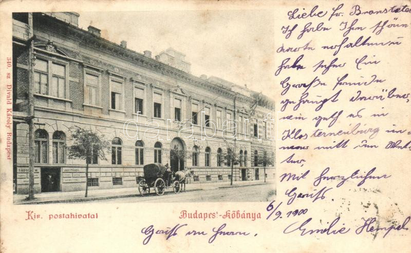 Leírás: Budapest X. Kőbánya, Királyi postahivatal, kiadja Divald Károly (EK)