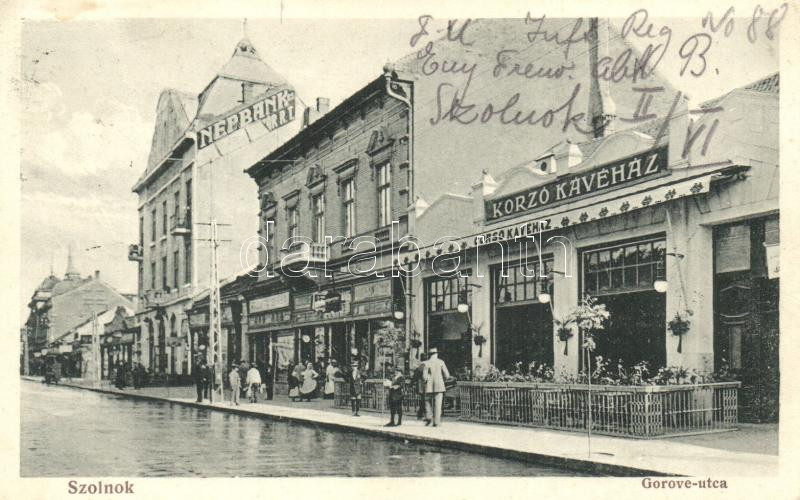 Szolnok, Gorove utca, Korzó Kávéház, Népbank, kiadja Gettler József (E... https://www.darabanth.com/hu/256-Gyorsarveres/256.0/Kepeslapok/Magyarorszag~400009/Szolnok-Gorove-utca-Korzo-Kavehaz-Nepbank-kiadja-Gettler-Jozsef-EK~II1253685