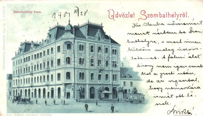 Szombathely, Szombathely háza, villamos, kiadja özv. Fekete Istvánné, ... https://www.darabanth.com/hu/256-Gyorsarveres/256.0/Kepeslapok/Magyarorszag~400009/Szombathely-Szombathely-haza-villamos-kiadja-ozv-Fekete-Istvanne-litho-EK~II1254543