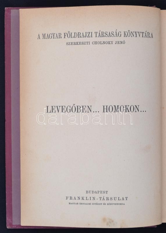 Almásy László: Levegőben... homokon... Magyar Földrajzi Társaság Könyvtára. Bp., é.n., Franklin. Kiadói aranyozott egészvászon kötésben, gerince kissé kopott egyébként szép.