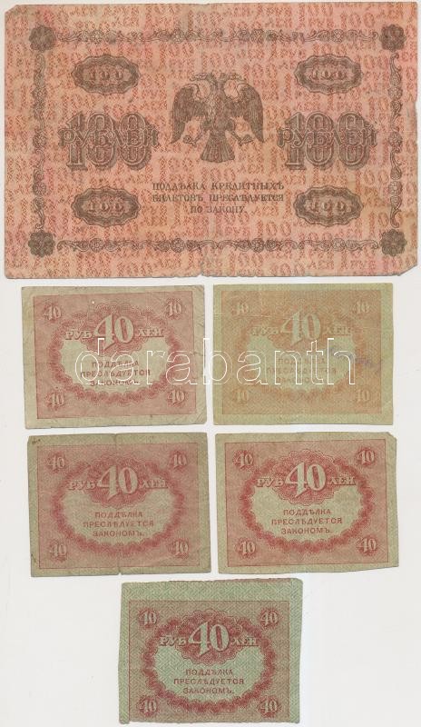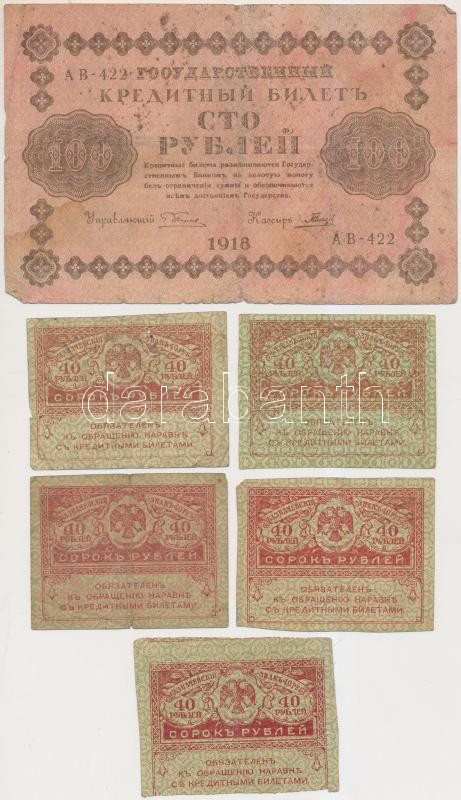 Orosz Birodalom 1917. 40R (5x) + Szocialista Szövetségi Szovjet Köztársaság 1918. 100R T:III,III-