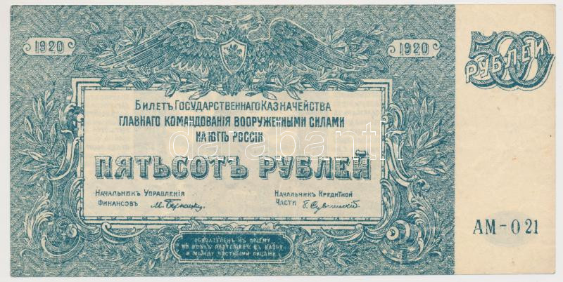 Orosz Polgárháború / Dél-Oroszország / Wrangel Hadserege 1920. 500R T:III szép papír