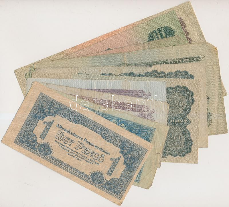 1944. 1P-100P (10x) "A Vörös Hadsereg Parancsnoksága" T:vegyes https://www.darabanth.com/hu/256-Gyorsarveres/256.0/Numizmatika/Magyar-bankjegyek~200008/1944-1P-100P-10x-A-Voros-Hadsereg-Parancsnoksaga-Tvegyes~II1252547