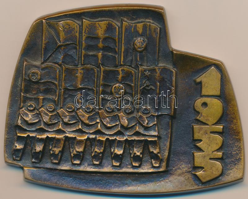 Leírás: 1955. "Varsói Szerződés" egyoldalas Br plakett (95x75mm) T:2