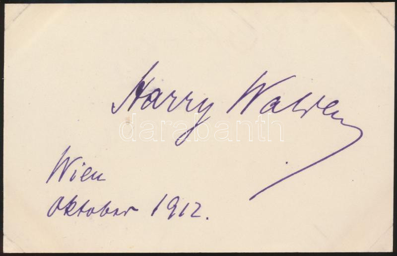 1912 Harry Walden (1875-1921) német színész aláírása papírlapon https://www.darabanth.com/hu/257-Gyorsarveres/257.0/Festmeny-mutargy-papirregiseg-egyeb/Alairas~18/1912-Harry-Walden-1875-1921-nemet-szinesz-alairasa-papirlapon~II1258998