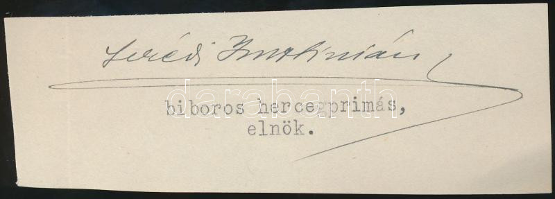 Serédi Jusztinián (1884-1945) tudós, egyházjogász, érsek, bíboros, a magyar katolikus egyház vezetője, aki nyíltan szembeszállt a nyilasokkal. Aláírás kivágáson