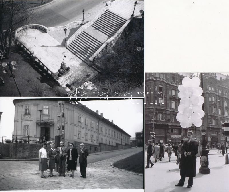 Leírás: cca 1930-1960 Régi budapesti város- és életképek tétele, 13 db korabeli negatív modern nagyítása, 13x9 cm és 13x18 cm között