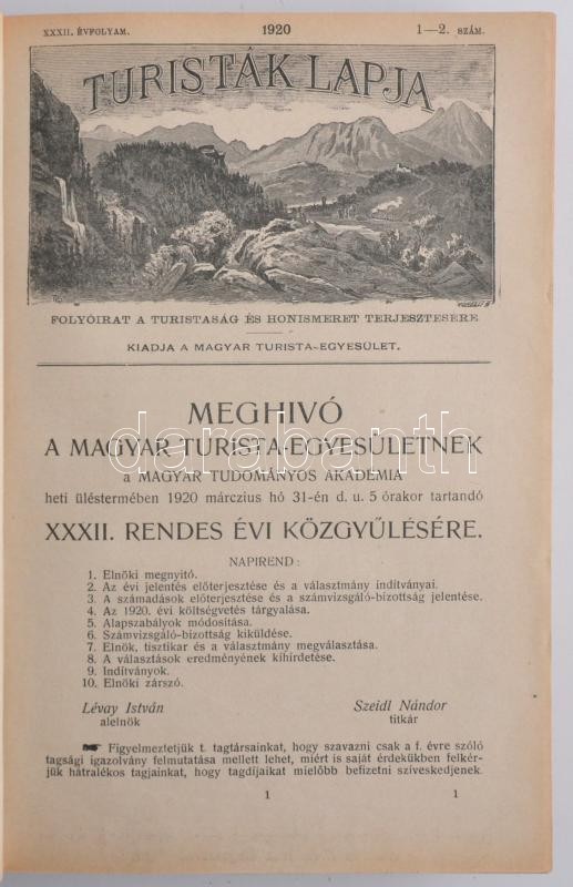 1920-25 Turisták Lapja Folyóirat. A turistaság és honismeret terjesztése. Szerkesztette: Déry József. Sok képpel. Budapest, "Élet" Irodalmi és Nyomda Részvénytársaság. 37 szám félvászon kötésben egybekötve.