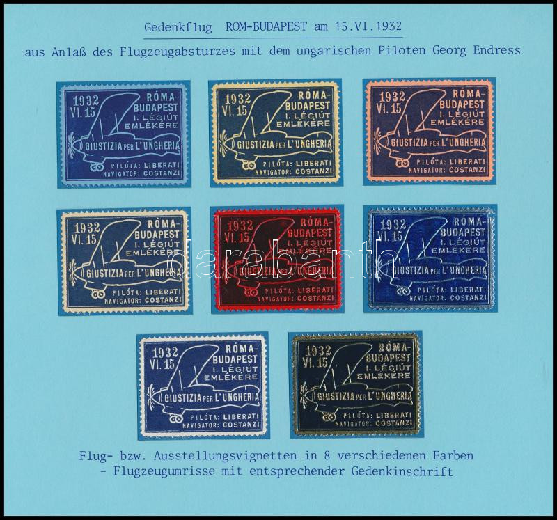 Leírás: 1932 Budapest-Róma repülés 8 klf levélzáró kartonra ragasztva