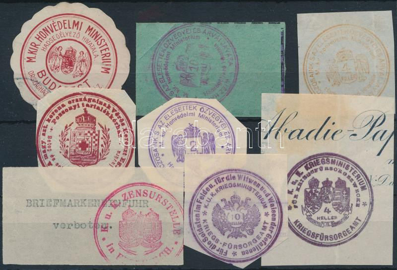 Leírás: cca 1916 Honvédelem és katonai témájú pecsétlenyomatok, segélybélyegek / Military aid poster stamps and seals 8 pcs