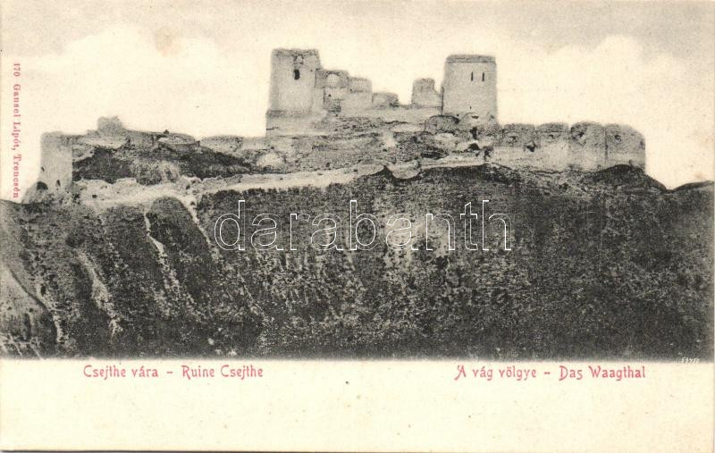 Leírás: Csejte, Cachtice; a Vág völgye, várrom, kiadja Gansel Lipót / river valley, castle ruins