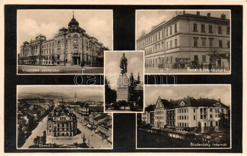 Kassa, Kosice; Katonai parancsnokság, Stefanovika kaszárnya, színház, ... https://www.darabanth.com/hu/257-Gyorsarveres/257.0/Kepeslapok/Felvidek~400011/Kassa-Kosice-Katonai-parancsnoksag-Stefanovika-kaszarnya-szinhaz-kollegium-Military-head~II1256536
