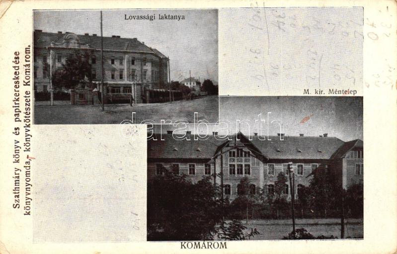 Leírás: Komárom, Komárno; Lovassági laktanya, Magyar Királyi Méntelep, kiadja Szathmáry könyv és papírkereskedése / cavalary barracks, stud farm (EK)