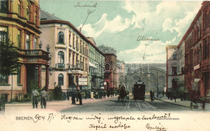 Leírás: Bremen, Bahnhofstrasse / railway station street, shop of E. Missler, tram (EK)