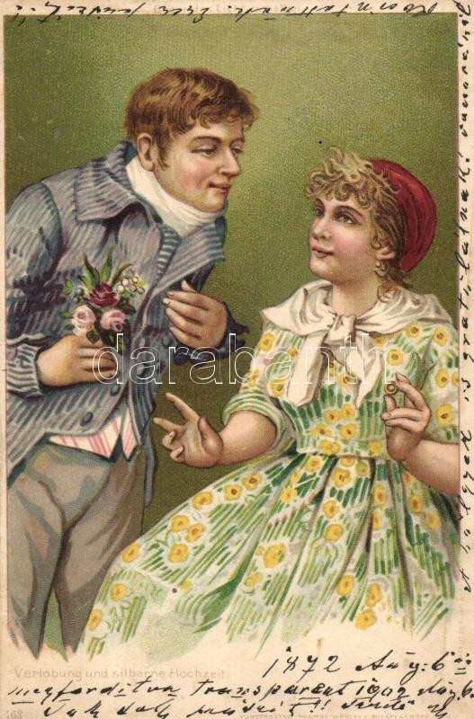 Leírás: Verlobung und silberne Hochzeit / Engagement and silver wedding, greeting card, Kosmos 163. litho