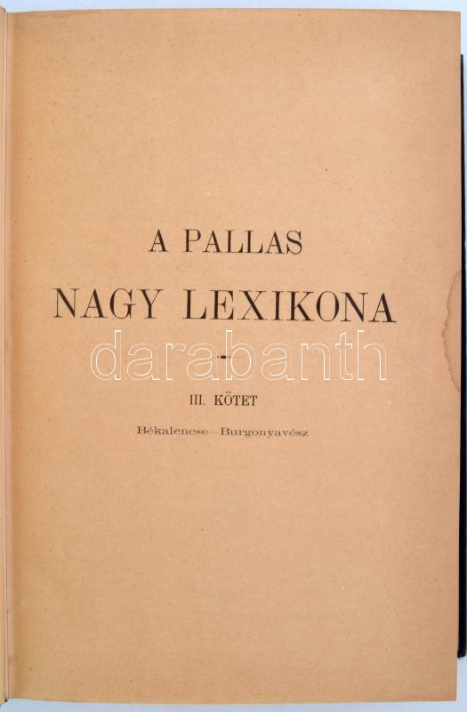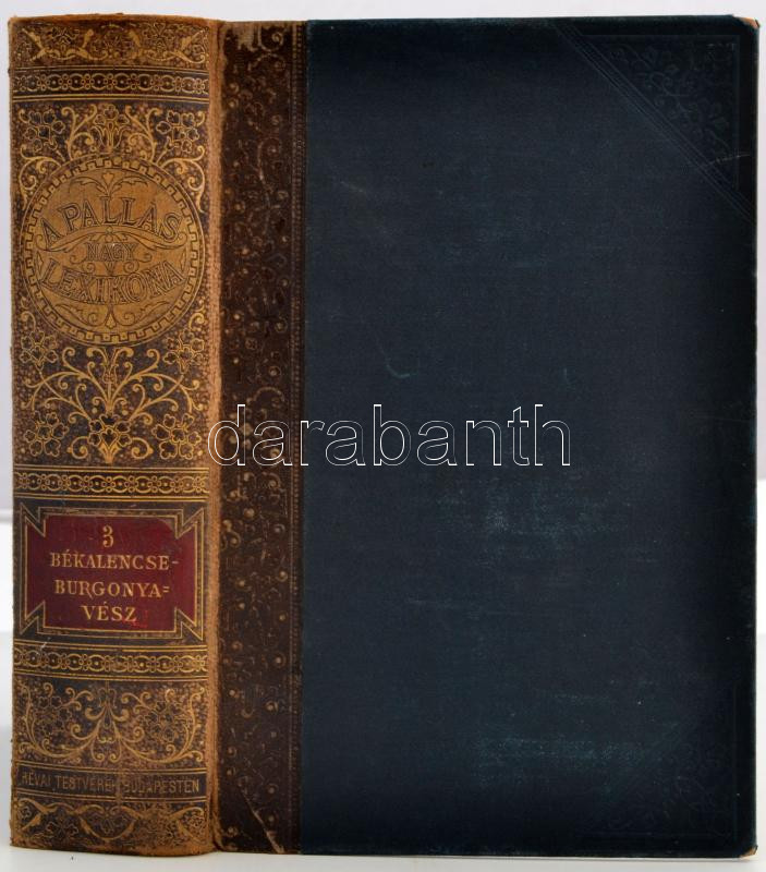 A Pallas nagy lexikona. 3. köt.: Békalencse - Burgonyavész. Bp., 1893, Pallas Irodalmi és Nyomdai Részvénytársaság. Kopott gerincű félbőr kötésben, egyébként jó állapotban.