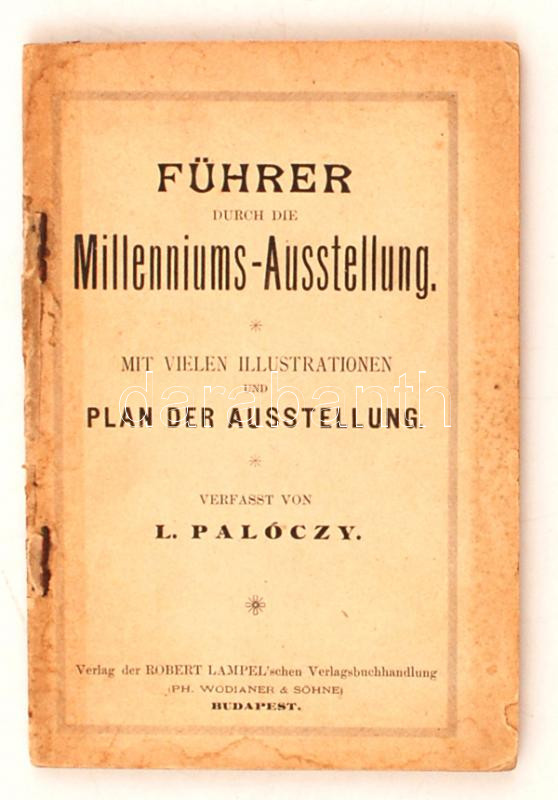 Leírás: Führer durch die Millenniums-Ausstellung. Szerk.: Palóczy, L. Bp., [1896], Lampel. Tűzött papírkötésben, borító nélkül, egyébként jó állapotban.