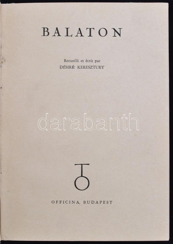 Leírás: Keresztury, Désire(Dezső): Balaton. Bp., 1940, Officina. Kiadói kartonált kötés, képekkel illusztrált, francia nyelvű kiadás, gerince sérült, kopottas állapotban.
