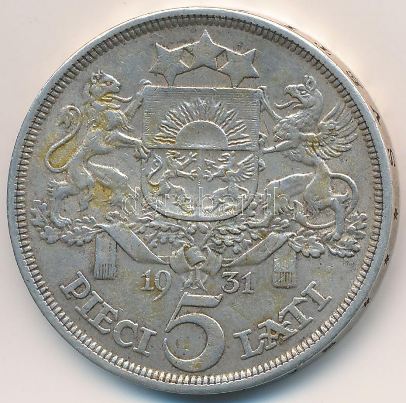 Latvia 1931. 5 Lati Ag C:VF https://www.darabanth.com/hu/257-Gyorsarveres/257.0/Numizmatika/Kulfoldi-fem-es-ezustpenzek~200012/Lettorszag-1931-5L-Ag-T2---Latvia-1931-5-Lati-Ag-CVF~II1264259