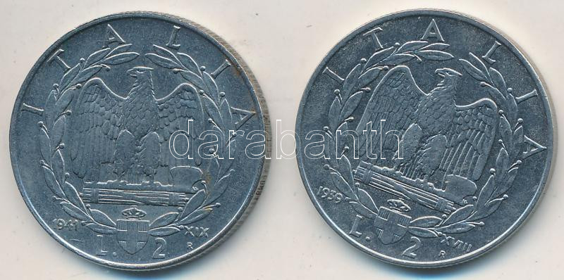I... https://www.darabanth.com/hu/257-Gyorsarveres/257.0/Numizmatika/Kulfoldi-fem-es-ezustpenzek~200012/Olaszorszag-1939R-2L-acel-plus-1941R-2L-acel-III-Viktor-Emanuel-T2--Italy-1939R-2-Lire-stainles~II1258767