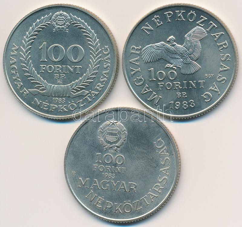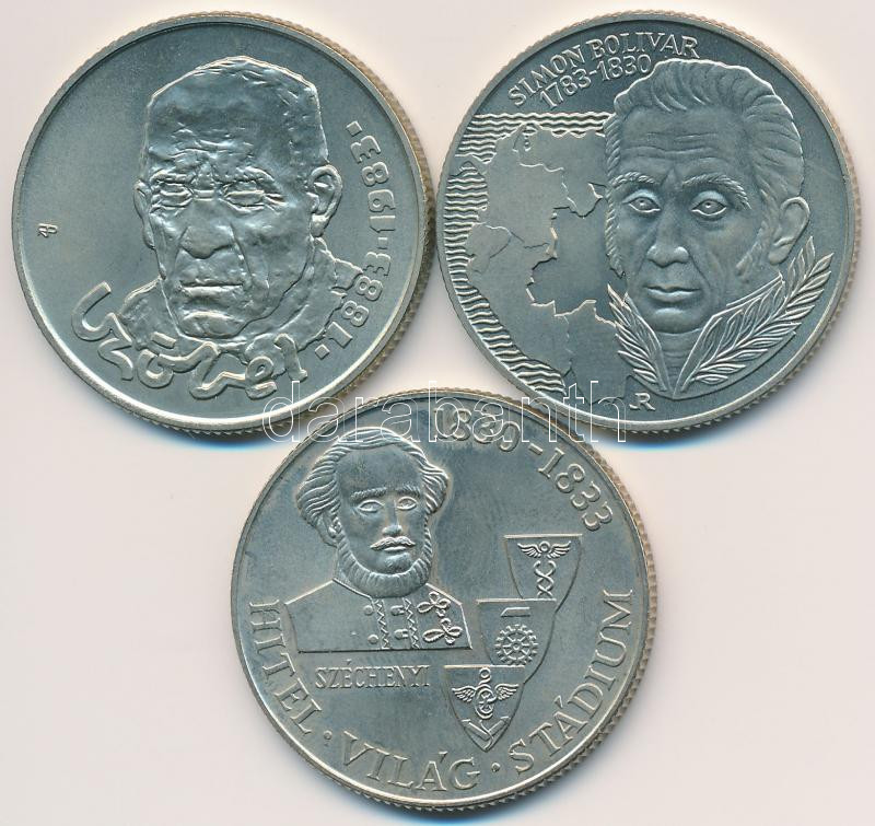 Leírás: 1983. 100Ft alpakka "Czóbel Béla" + 100Ft alpakka "Simon Bolivár" + 100Ft alpakka Széchenyi István" T:BU