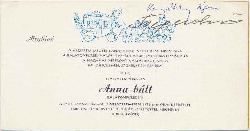 Leírás: Georgij Beregovoj (1921-1995) orosz űrhajós és Komjáthy Ágnes, az Anna-bál győztesének aláírása az 1971-es füredi Anna-bál meghívóján.