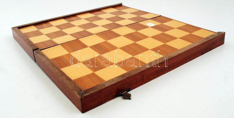 Leírás: Retró sakktábla doboz bábuk nélkül, kinyithatós, hibás, 20x38x6cm