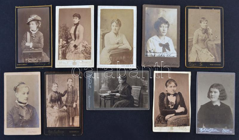 cca 1880-1900 Nők, vegyes keményhátú fotó tétel különböző műtermekből,... https://www.darabanth.com/hu/258-Gyorsarveres/258.0/Festmeny-mutargy-papirregiseg-egyeb/Foto~18/cca-1880-1900-Nok-vegyes-kemenyhatu-foto-tetel-kulonbozo-mutermekbol-10db-11x7cm~II1267796