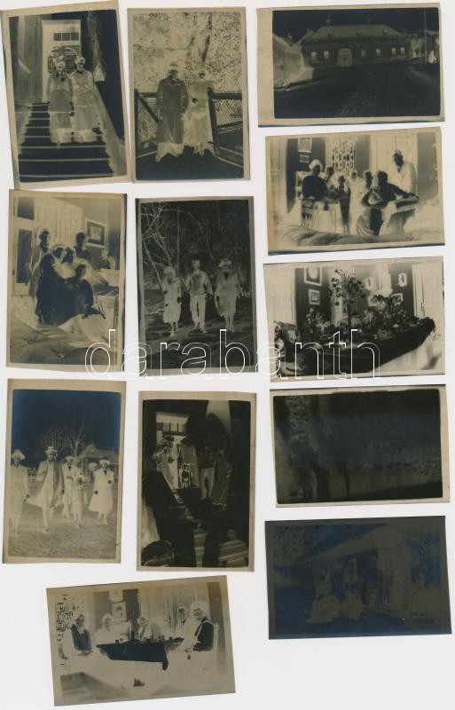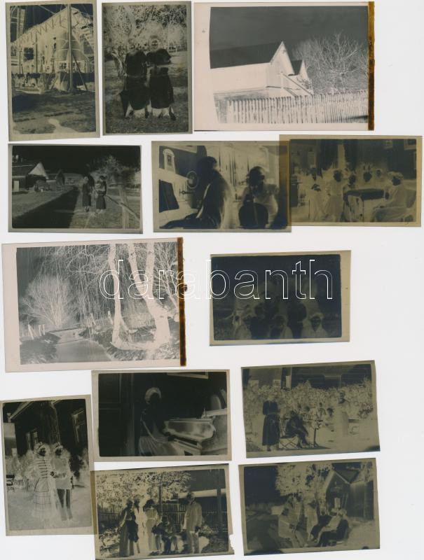 cca 1919-1925 Keszthelyen készült negatív felvételek: családi fotók, épületfotók, utcaképek, tájak, lakásbelsők, vízpart, évenként, borítékonként feliratozva, 99 db negatív 4x6 cm