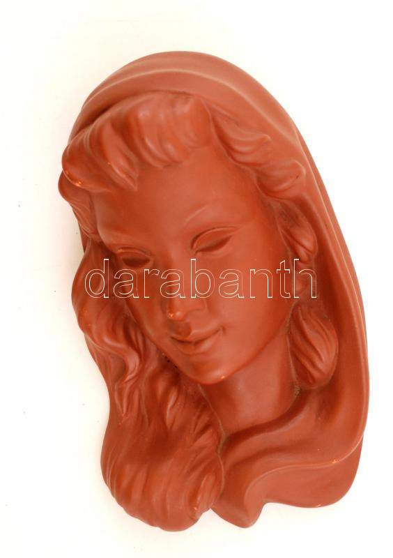 Leírás: Art deco stílusú női fej, falikép, sorszámozott, mázas kerámia, apró máz hibákkal, 22×12 cm