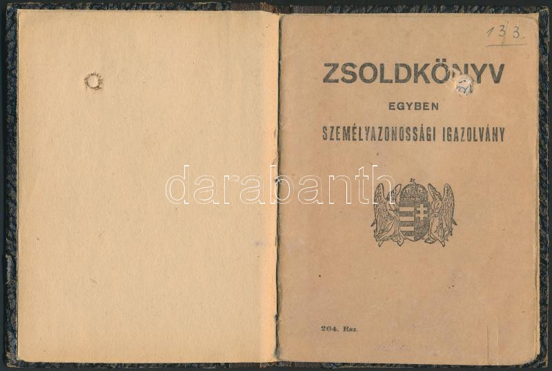 1943 Csucsa, Munkaszolgálatos számára kiállított zsoldkönyv, egyben sz... https://www.darabanth.com/hu/258-Gyorsarveres/258.0/Festmeny-mutargy-papirregiseg-egyeb/Militaria~24/1943-Csucsa-Munkaszolgalatos-szamara-kiallitott-zsoldkonyv-egyben-szemelyazonossagi-igazol~II1271061