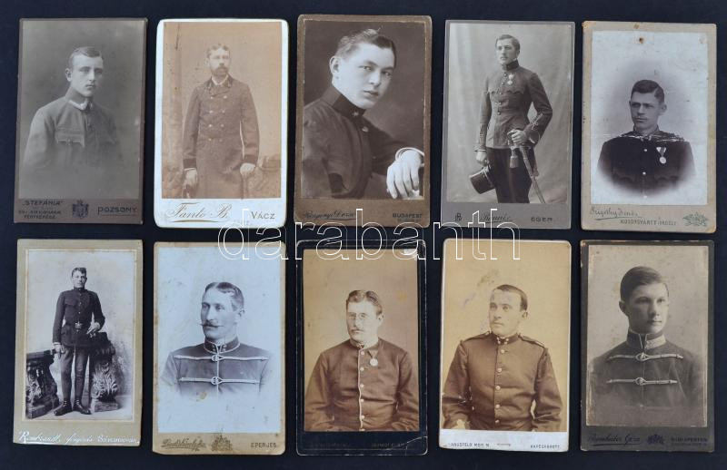 Leírás: cca 1880-1900 Vegyes keményhátú katonai fotó tétel különböző műtermekből, 10db, 11x7cm