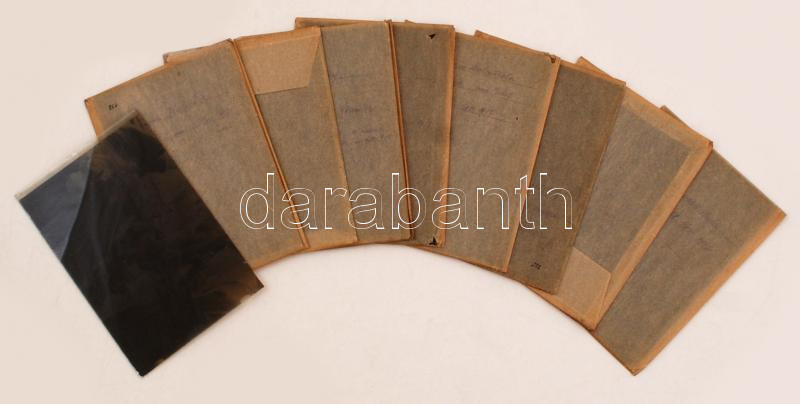 Leírás: cca 1917 Katonai felvételek negatívja, 8 db üveglemez negatív, tasakjukon feliratozva, datálva, 10x15 cm / 8 military photo negatives