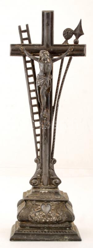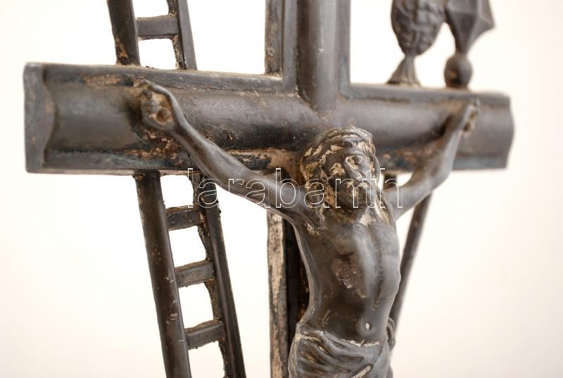 Leírás: Díszes, ezüstözött, antik feszület létrával, 44x13cm