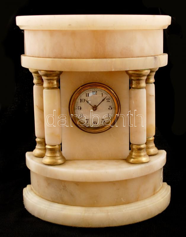 Oszlopos alabástrom kandallóóra, működőképes, 23x18x9cm https://www.darabanth.com/hu/258-Gyorsarveres/258.0/Festmeny-mutargy-papirregiseg-egyeb/Mutargyak-antikvitas~3/Oszlopos-alabastrom-kandalloora-mukodokepes-23x18x9cm~II1271236
