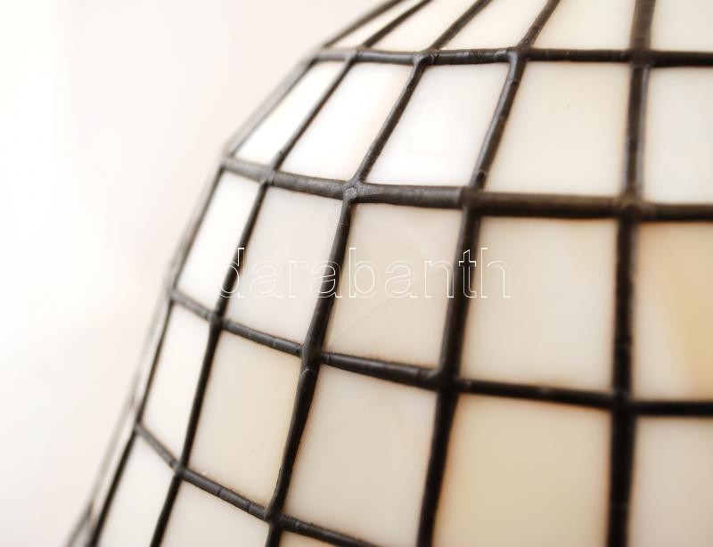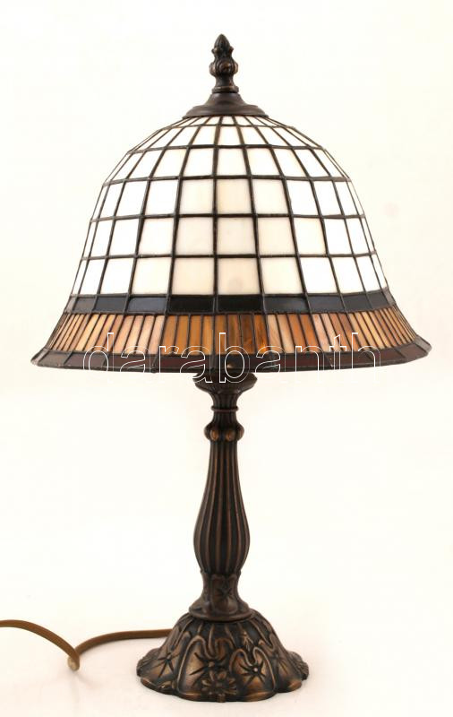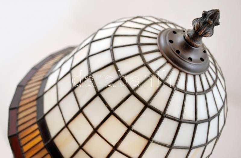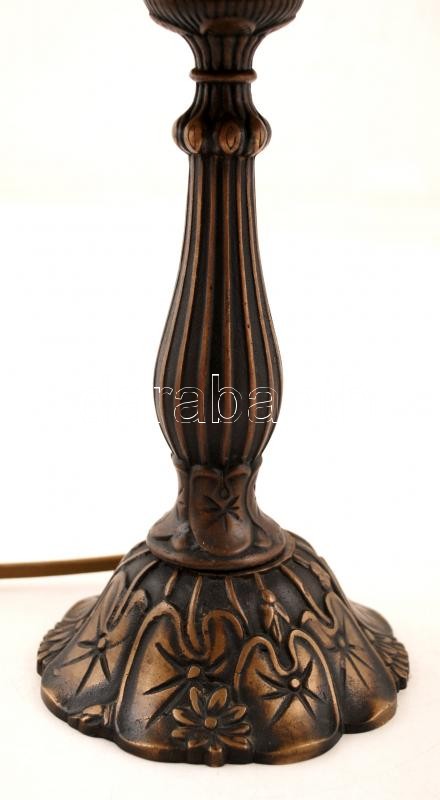 Leírás: Tiffany jellegű lámpa, bronz, néhányon repedt az üveg, 40x24cm
