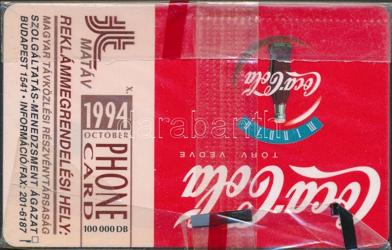 Leírás: 1994 MATÁV Coca-Cola 50 egységes bontatlan telefonkártya