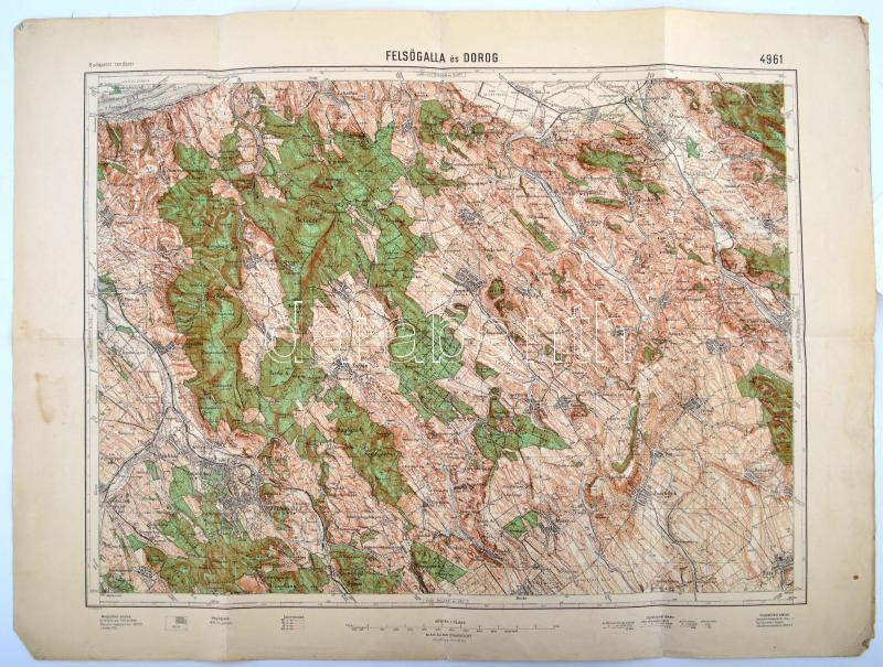 Leírás: cca 1930 Felsőgalla és Dorog térkép, 1:75.000, M. Kir. Állami Térképészet, hajtogatva, 47x63cm.