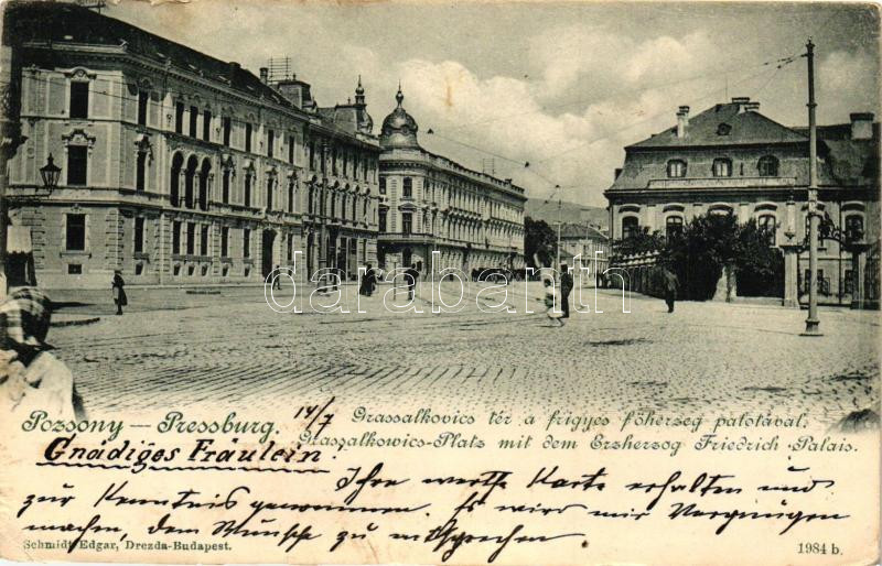 Leírás: Pozsony, Pressburg, Bratislava; Grassalkovics tér, Frigyes főherceg palota / square, palace (EK)