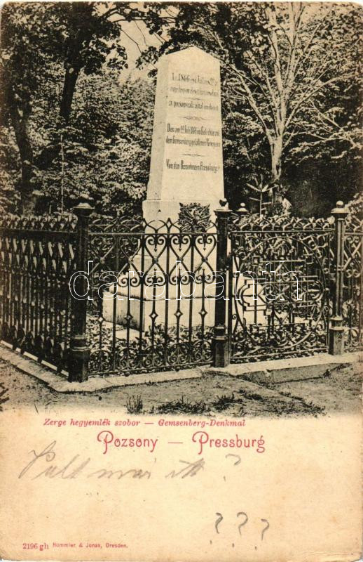 Pozsony, Pressburg, Bratislava; Zerge hegyemlék szobor / statue (EK) https://www.darabanth.com/hu/258-Gyorsarveres/258.0/Kepeslapok/Felvidek~200028/Pozsony-Pressburg-Bratislava-Zerge-hegyemlek-szobor-statue-EK~II1267314