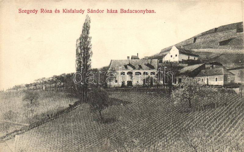 Badacsony, Szegedy Róza és Kisfaludy Sándor háza, kiadja Mérei Ignác B... https://www.darabanth.com/hu/258-Gyorsarveres/258.0/Kepeslapok/Magyarorszag~200024/Badacsony-Szegedy-Roza-es-Kisfaludy-Sandor-haza-kiadja-Merei-Ignac-Balaton-irasban~II1269413