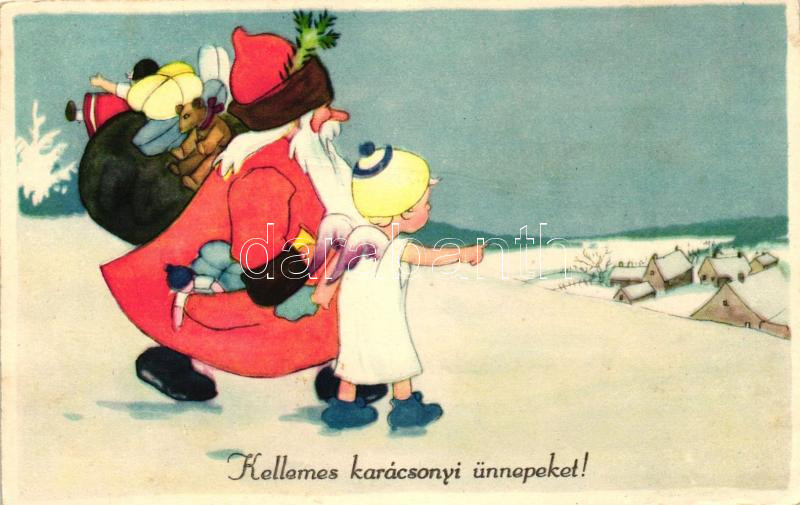 Christmas, Santa Claus, angel, B.Co.B. 2365/1. https://www.darabanth.com/hu/258-Gyorsarveres/258.0/Kepeslapok/Udvozlolapok-Unnepek~200098/Christmas-Santa-Claus-angel-BCoB-23651~II1266443