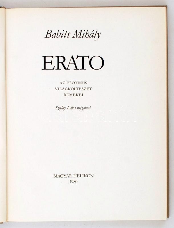 Babits Mihály: Erato. Bp., 1980, Magyar Helikon. Kiadói, kopottas nyl-... https://www.darabanth.com/hu/258-Gyorsarveres/258.0/Konyvek/Konyvek-Egyeb-ritkasagok~39/Babits-Mihaly-Erato-Bp-1980-Magyar-Helikon-Kiadoi-kopottas-nyl-kotesben-Szamozott-1339~II1222349