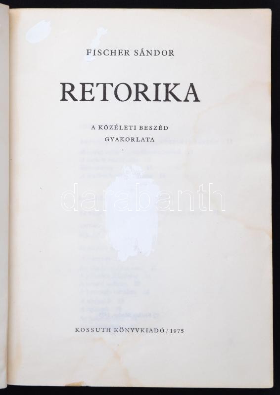 Leírás: Fischer Sándor: Retorika. A közéleti beszéd gyakorlata. Bp., 1975, Kossuth. Kiadói papírkötés, kopott állapotban.