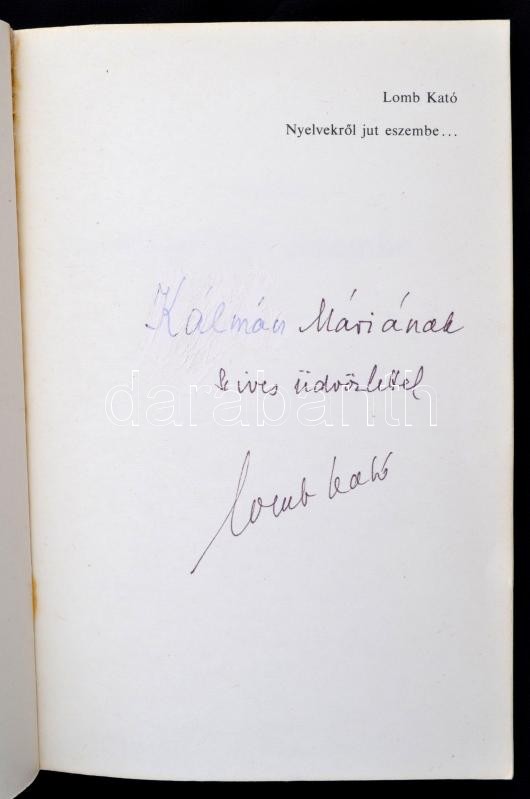 Lomb Kató: Bábeli harmónia; ...nyelvekről jut eszembe... Egyik DEDIKÁL... https://www.darabanth.com/hu/258-Gyorsarveres/258.0/Konyvek/Konyvek-Egyeb-ritkasagok~39/Lomb-Kato-Babeli-harmonia-nyelvekrol-jut-eszembe-Egyik-DEDIKALT-Kiadoi-papirkotes-~II1266393