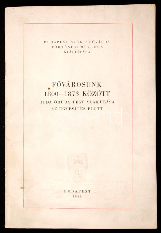 Leírás: Fővárosunk 1800-1873 között. Buda, Óbuda, Pest alakulása ez egyesítés előtt. Bp., 1948. Székesfőváros házinyomdája. 50p.