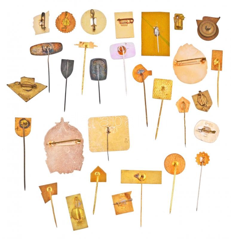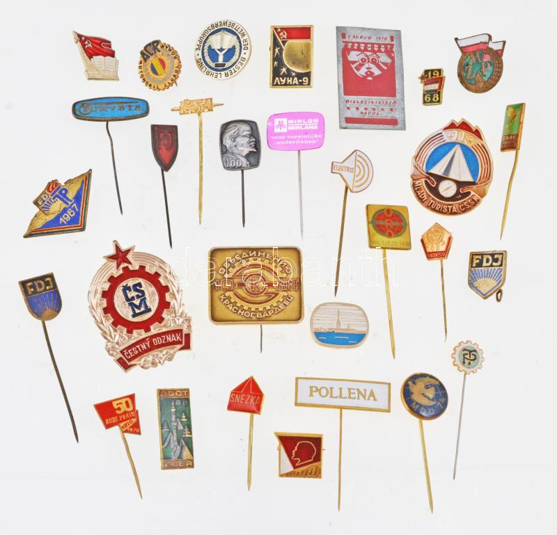 30db vegyes magyar és külföldi szocialista kitűző, jelvény, közte zománcozott is T:vegyes 30pcs of mixed socialist pins and badges, with enamelled pcs C:mixed